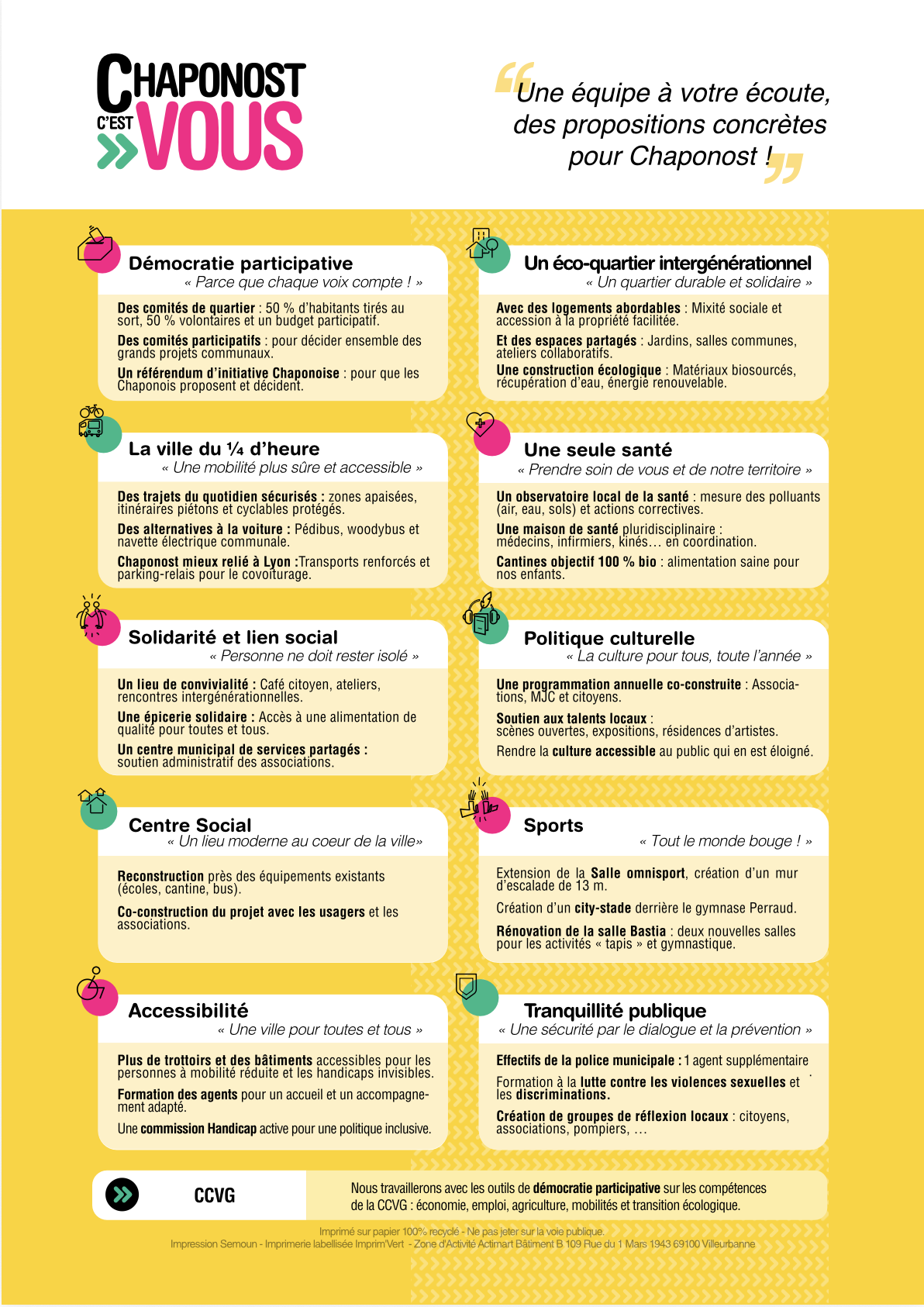 Découvrez ci-dessous les mesures phares qui guideront notre action pour Chaponost.